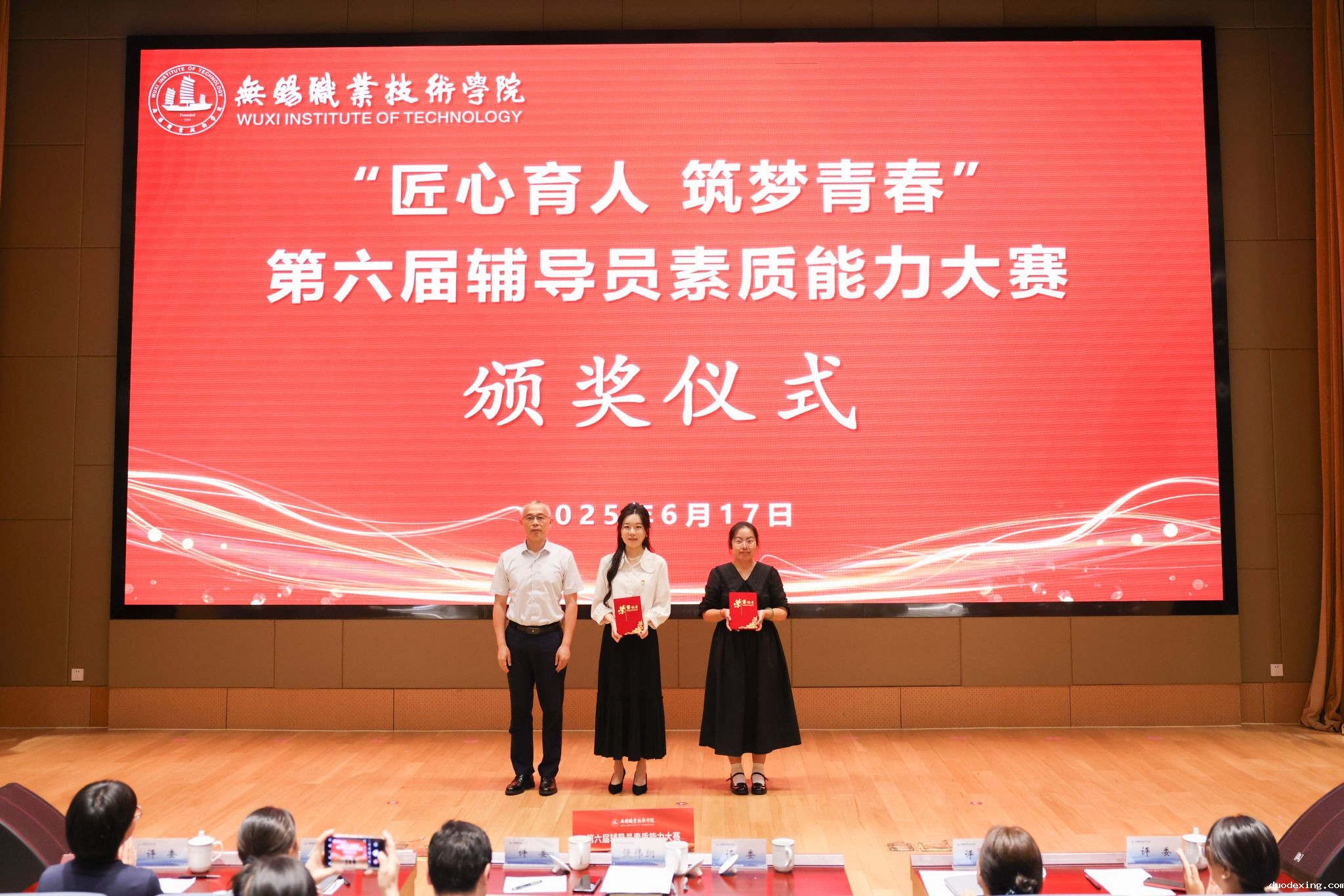 本次辅导员素质能力大赛参照江苏省高校辅导员素质能力大赛赛制,分为基础知识测试、案例研讨和谈心谈话三个部分。8名辅导员通过前期的基础知识测试初赛成功晋级决赛。在案例研讨环节,辅导员们面对复杂案例深入剖析、挖掘问题根源、总结工作规律。在谈心谈话环节,选手们以积极的态度、耐心的疏导与助演学生深入交流,展现出高超的沟通技巧与人文关怀。决赛过程中,参赛选手的精彩表现充分彰显了我校辅导员队伍扎实的理论功底、过硬的工作能力与良好的职业素养。经过评委们认真打分,最终华涓、葛星星获得一等奖,陈明媛、曾力立获得二等奖,庄中南、陈曦、朱健、夏鑫琥获得三等奖。